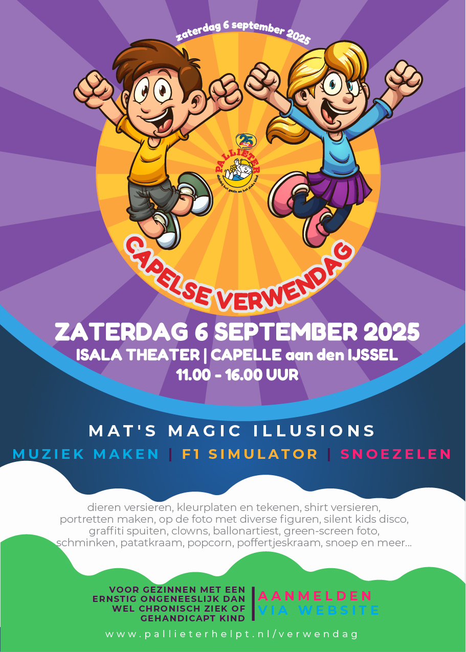 Meer informatie en inschrijven is mogelijk via https://www.pallieterhelpt.nl/verwendag. Zien we u ook op de Capelse Familie Verwendag?