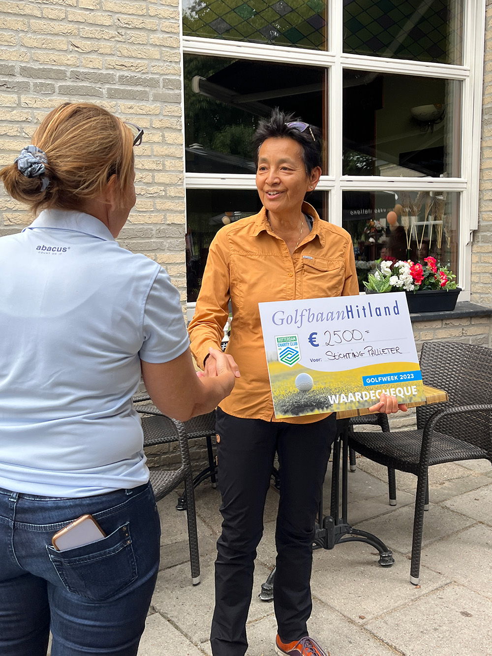 De jaarlijkse goede doelen golfweek op Golfbaan Hitland heeft een bedrag van € 30.000 opgebracht! Er is van maandag 11 t/m zaterdag 16 september voor vier goede doelen gegolfd: Yess!, Giovanni van Bronckhorst Foundation, het Leontienhuis en Stichting Pallieter. Wij hebben een cheque van € 2.500 in ontvangst mogen nemen. Dankzij Dylan Weggeman van IGolf, die zijn, tijdens de loterij gewonnen jaarkaart ter beschikking stelde voor een veiling, hebben wij nog € 650 extra gekregen. Wij willen Dylan, de golfbaan Hitland, de organisatie en iedereen die heeft bijgedragen aan de fantastische opbrengst heeft heel hartelijk bedanken.